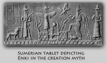 Another story states that together, Anu, Enki, and Enlil came up with a plan and decided to create a new race of beings to act as servants to the gods and do all the hard labor for them. They selected Geshtue, a god who was blessed with great intelligence and sacrificed him. The birth goddess, Ninmah, mixed his flesh and blood with clay after which all the gods spat on the mixture.