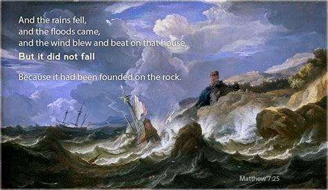 Therefore whosoever heareth these sayings of mine, and doeth them, I will liken him unto a wise man, which built his house upon a rock: And the rain descended, and the floods came, and the winds blew, and beat upon that house; and it fell not: for it was founded upon a rock. (Matt. 7:24-25)